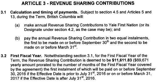 “The agreement was under negotiation for many years and was first signed in 2010… The deal, which was due to be implemented in April, would have given the Yale ‘First Nation’ more than $12-million and control of nearly 2,000 hectares of land.