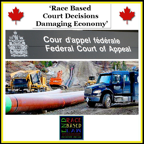 “This is the third time in 12 years that the Federal Court has blocked a major pipeline proposal on grounds of ‘insufficient consultation’ {with only aboriginal Bands, NOT the rest of Canadians}… In each case, the proposal was backed by many ‘First Nations’ {aboriginal} and Métis {mixed race} organizations, but a small number of ‘First Nations’ (six, in the case of Trans Mountain) was able to get a court to rule that some phase of ‘consultation’ had been inadequate.”
