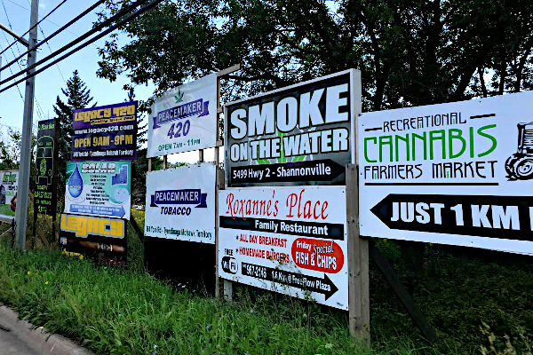“Several ‘First Nations’ {aboriginal communities}, like Tyendinaga, Pikwakanagan and Alderville in Ontario, and Kanesatake in Quebec, already have thriving {illegal} cannabis retail stores operating outside of provincial and federal rules…