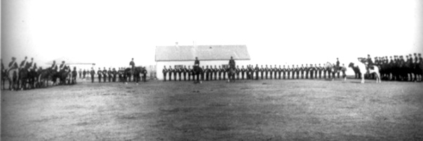 “A considerable military force for that time and place was on duty, presumably to prevent trouble. Two full divisions of the N.W. M. P. and “A” battery — in all about 350 men. Sounds small to those used to the large numbers spoken of in the late war, but as I said before this was as different time and place. We were drawn up in the form of a hollow square surrounding the scaffold, and the civilians and Indians were within the stockade, not allowed to crowd up to the military but given every opportunity to observe all that happened. Now the scene is set and nothing to do till 10 o’clock.