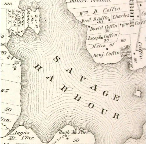 Savage Harbour, Savage Bay, Savage Wharf and the Savage Harbour cottage area. That is hard for me to say. I hate saying that word“,