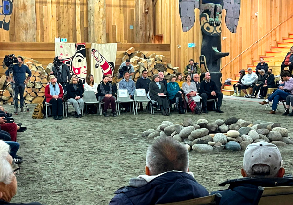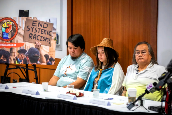 “‘Nation’ {‘community’} leaders expected the two Vancouver Police Department (VPD) constables who arrested Heiltsuk man Maxwell Johnson and his granddaughter in 2019 to attend the ceremony in order to apologize face to face.