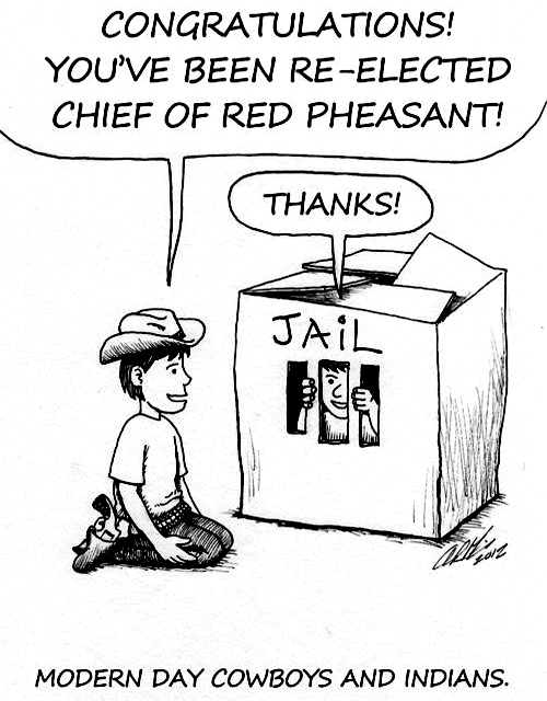 “The former chief of the Red Pheasant ‘First Nation’ in Saskatchewan was sentenced Tuesday to eight months in jail for orchestrating a vote-buying scheme that won him a 2005 election.