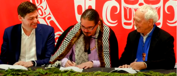 “The agreement was signed by representatives from the Council of the Haida ‘Nation’, several hereditary chiefs, and officials from the B.C. government and others from municipalities.