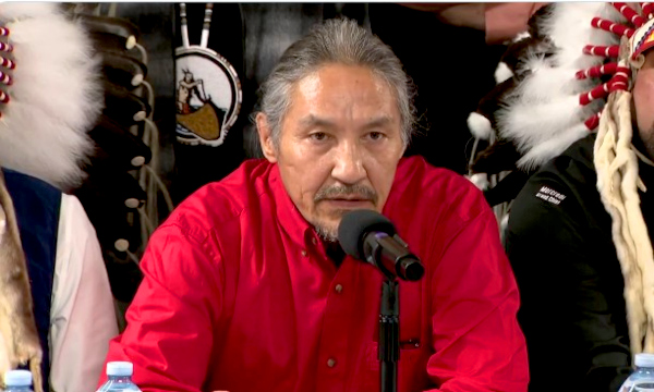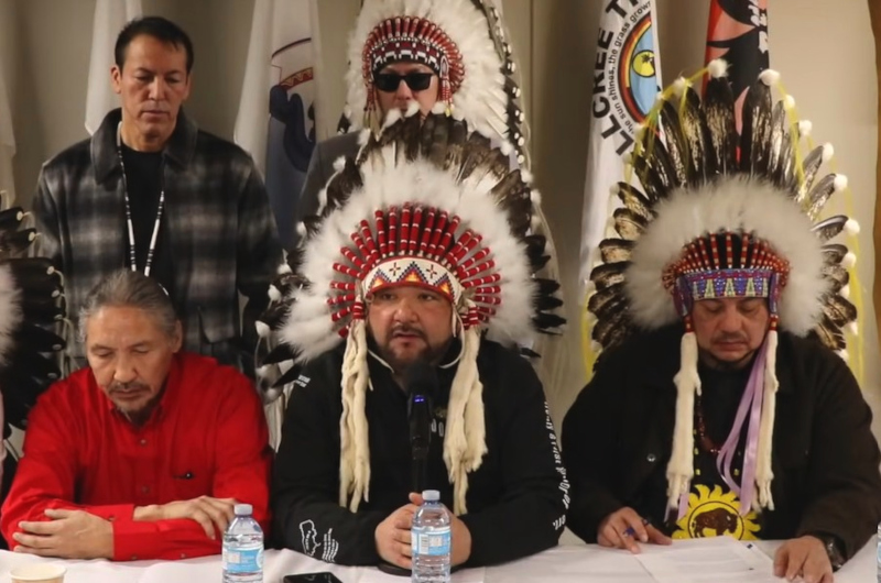 “Resign, immediately”, was the message delivered to Alberta Premier Danielle Smith and her UCP government by Athabasca Chipewyan ‘First Nation’ Chief Allan Adam, who was flanked at the press conference by chiefs from Treaties 3, 6, 7 and 8.