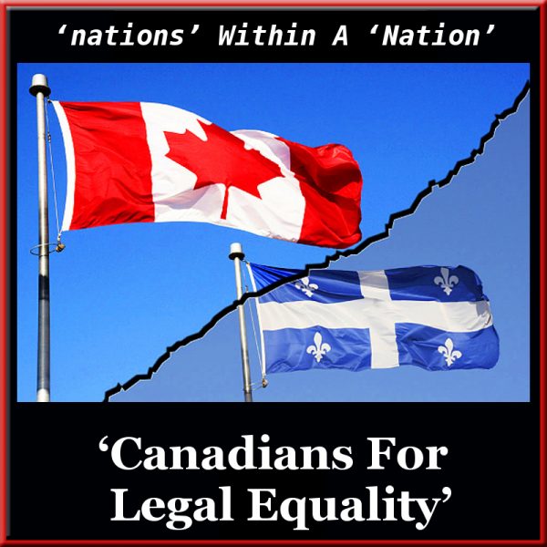 “Our nation of Canada is now only one of several “nations” within our borders, with the other ‘nations’ also receiving special Constitutional powers. This has created a Constitutional rights hierarchy, rather than equal rights for all Canadians. It began, of course, with the Quebecois “nation” and has spread like a virus, with new would-be aboriginal “nations” springing up in all corners of our land. Now, it’s even taboo in some circles to refer to Canada as “One Nation”…”