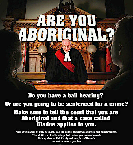 “In attempting to cope with the high proportion of aboriginals in Canadian prisons, Parliament and our judicial leadership have unfortunately resorted to differential treatment based on Race/heritage. It’s called ‘Gladue’, after the name of the Supreme Court case. The Court, instead of doing its duty and tossing out the discriminatory legislation, sided with ‘aboriginal exceptionalism’, and extended Segregation into court sentencing…”